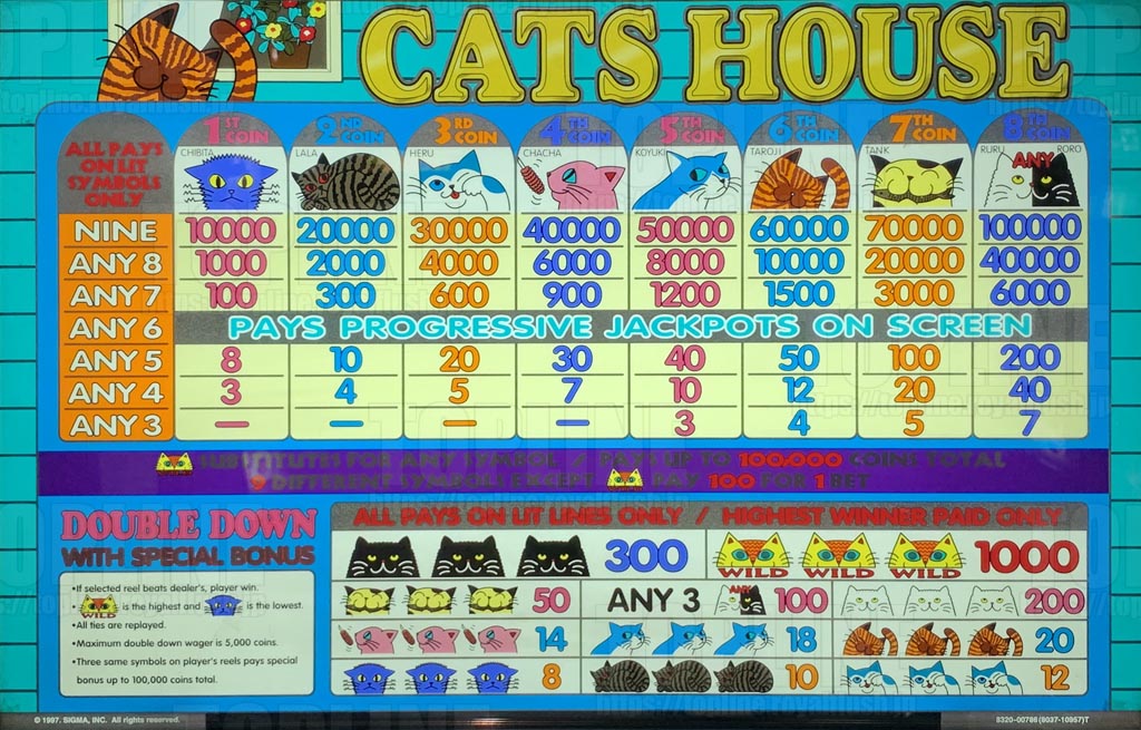 SUPER 8 WAYS GAME TYPE CATS HOUSE MAIN GAME P/O PERCENT 91.7 DOUBLE GAME P/O PERCENT 100.0