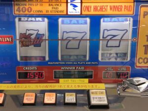 ■ シングル設置台(2019年5月) <シグマ> ボーナススピンZ×1/ボーナススピンジョーカーズワイルド(40B仕様)×1/マルチゲームレッド・赤マルチ×2(新VER1、旧VER1)/マルチゲームブルー・青マルチ(旧VER)×1/クール104×3/ジャックスオアベタープログレッシブ・赤プログレ×5(5B仕様3、10B仕様2)/*マルチポーカーエクストラドロー×1/*エクストラドローポーカー(IM筐体・1990表記)×1 <アルゼ・ミレナリー> ボーナススピンツインジョーカーズ×1/ボンバースピン(ミレナリースラント)×1 <クロン> ワイルドローズガーデン×1(※ダブル10000迄) <その他> ドラゴン・風雷神(15リール)×1、コナミ・トゥインクルドロップ×2(白い方の筐体) コナミ・フィーチャープレミアム×4(※詳細は省略)、コナミ・ギャラクシーシリーズ系×4~5台(ユーロクィーン、彩華浪漫等) 機種名の前の*はプレミアメダル(1枚=100枚分)非対応台 (情報提供:サムソニアさん)
