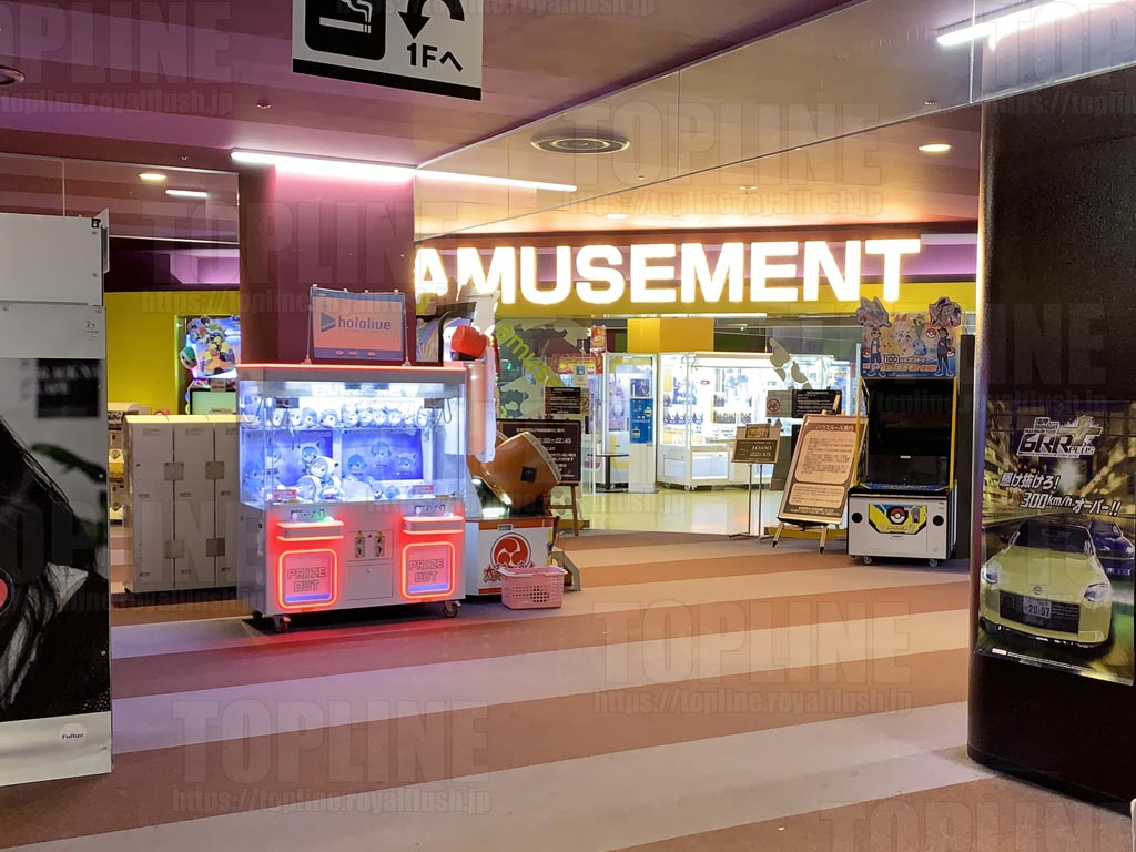 プライズやプリ機、メダルゲームなど揃って入るが、アーケードゲームは規模の割に少なめ。