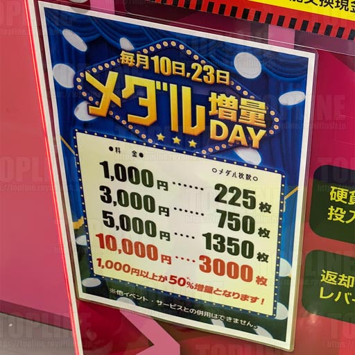 大中小マスメダル、キッズメダル設置有り。