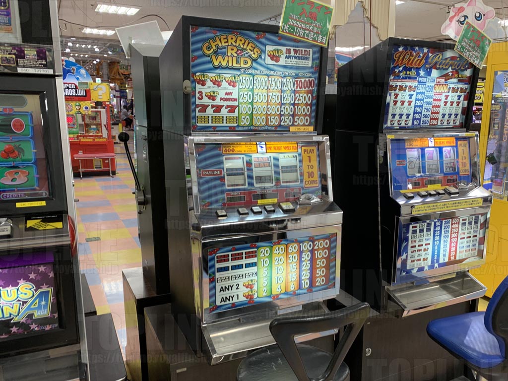 「CHERRIES R’ WILD」「DOUBLE 7」稼働中、「SILVER 7-BAR」稼働休止中、そして、一番の目当てだった「WINNER’S CHOICE (8CM01)」稼働休止中…残念。