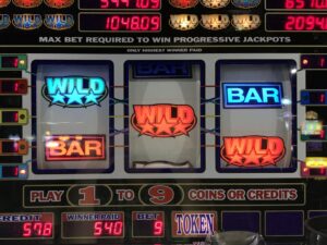 トップライン及び同色のワイルド並びはプログレッシブジャックポット。