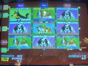 ダブルダウンはディーラーと同じ絵を揃えると配当が4倍になるトンデモ台。5ベットで高配当の絵が4つ以上出て100倍超の当たりもあり見た目によらない強烈な1台。