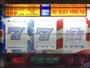 見るとかなりキツイ印象を受けるかと思いますが、10ベットで500クレジット、途中10倍のあたりも出ますので、ビデオスロットの小当たりが無い感じと考えればこんなものでしょう。