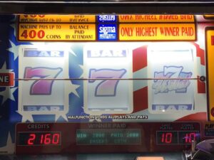 不調時の挙動は、ブランクの10枚やanyBARの50枚がぱったり来なくなる。1000枚前後吸われることもあるが、7の当たりが来てある程度クレジットは回復する可能性が高い。来ない来ないと思ってたら白7なんかが当たることもあるので、引き際は正直ぱっとしない(^^;;