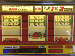3リール、3ライン、1~3ベット可能なスロットマシン。